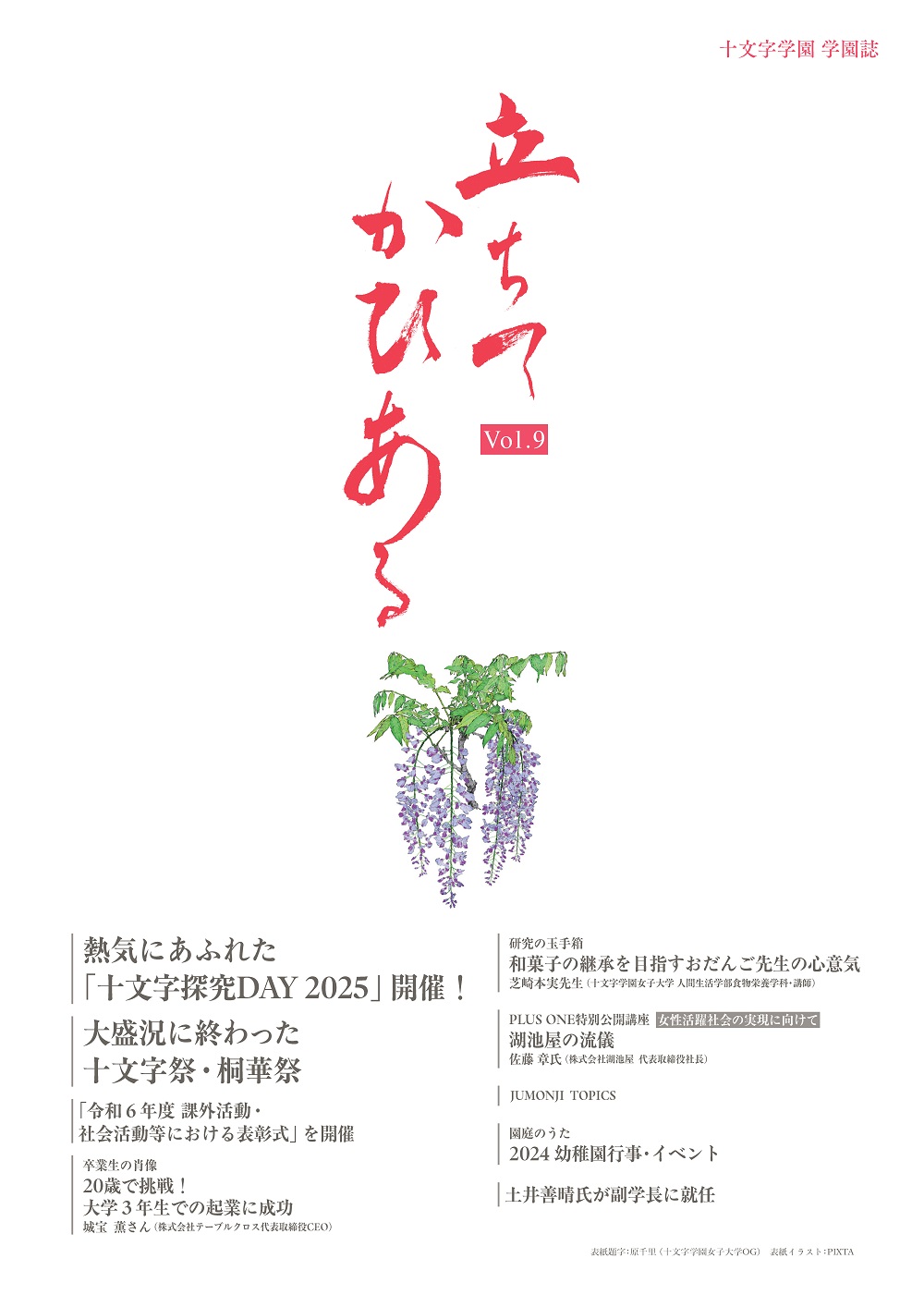 熱気にあふれた「十文字探究DAY 2025」開催! 大盛況に終わった十文字祭・桐華祭 「令和6年度 課外活動・社会活動等における表彰式」を開催 卒業生の肖像 20歳で挑戦!大学3年生での起業に成功 城宝 薫さん(株式会社テーブルクロス代表取締役CEO) 研究の玉手箱 芝崎本実先生(十文字学園女子大学 人間生活学部食物栄養学科・講師) PLUS ONE特別公開講座 湖池屋の流儀 佐藤 章氏(株式会社湖池屋 代表取締役社長) JUMONJI TOPICS 園庭のうた 2024 幼稚園行事・イベント 土井善晴氏が副学長に就任 | |